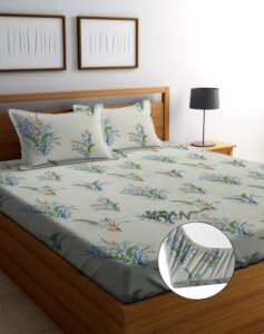 Amrange® Glace Cotton King Size All Around Elastic Fitted Double Bedsheet 72” x 78” + 8 Inch(Drop) with 2 Pillow Covers Fit for 4-8 inch Mattress